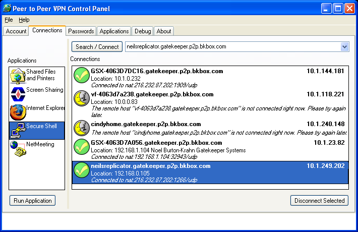 P2PVPN is a peer-to-peer firewall-tunneling VPN. It connects peer computers through firewalls like Skype does, but instead of voice conferencing, P2PVPN creates a virtual ethernet interface and gives peers virtual IP addresses for each other.
